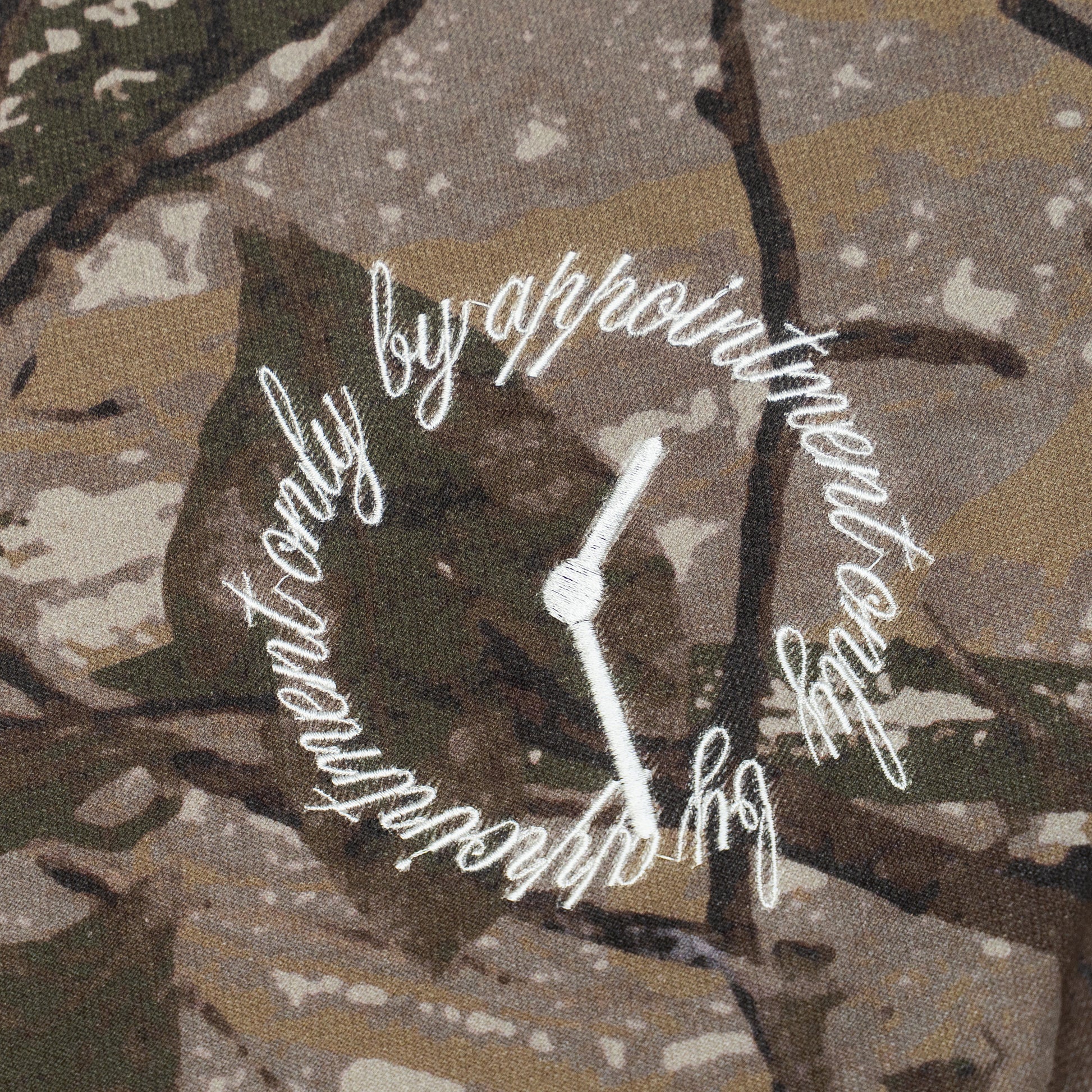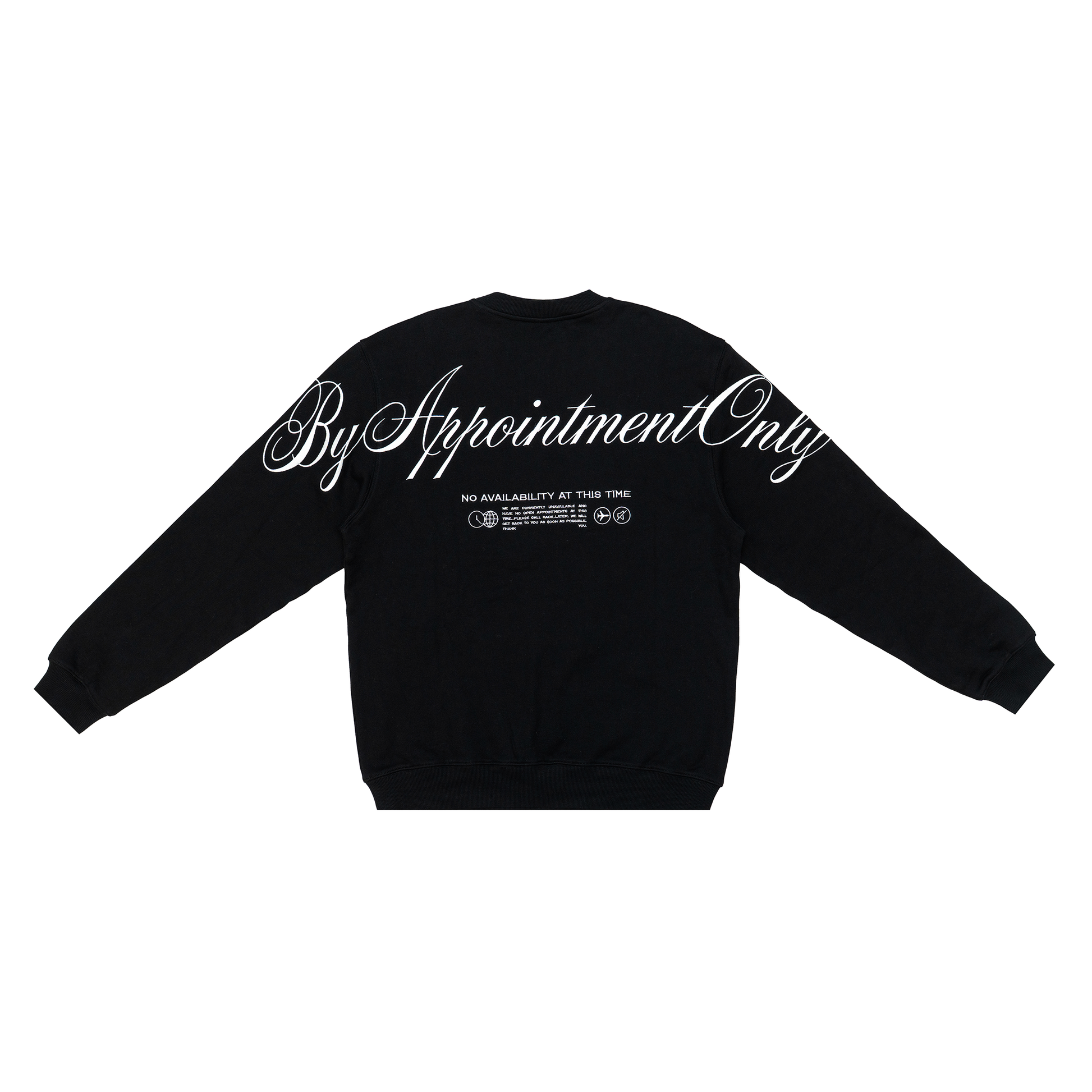 Cut in a relaxed fit from soft midweight brushed fleece. Features screen-printed clock insignia at front chest. Oversized “By Appointment Only” script across back. Finished with woven label at hem.