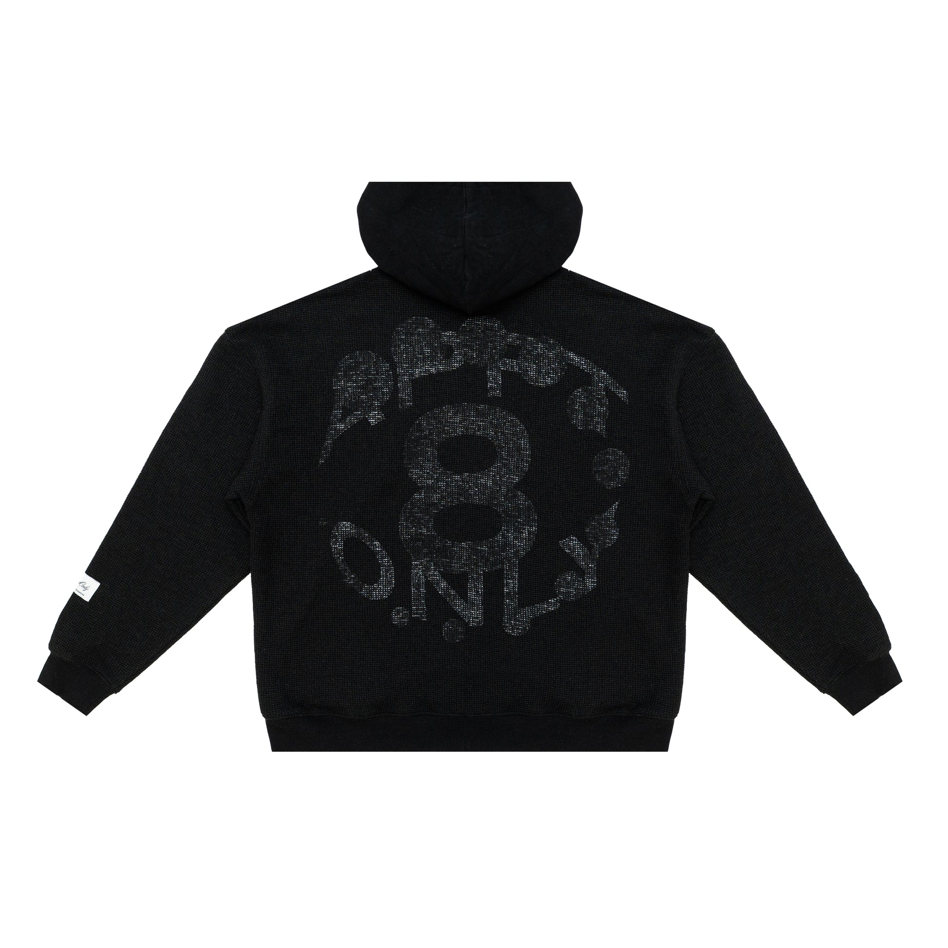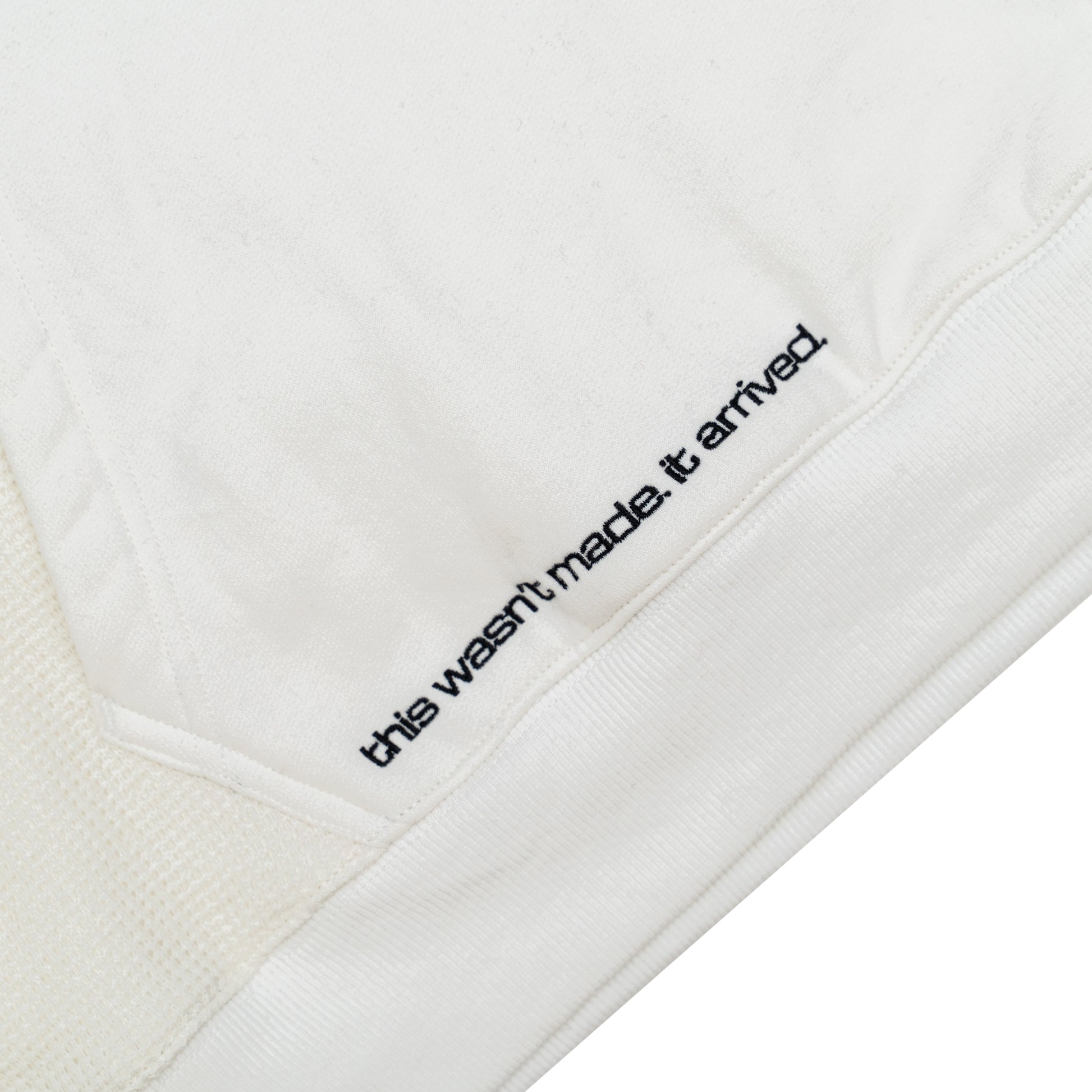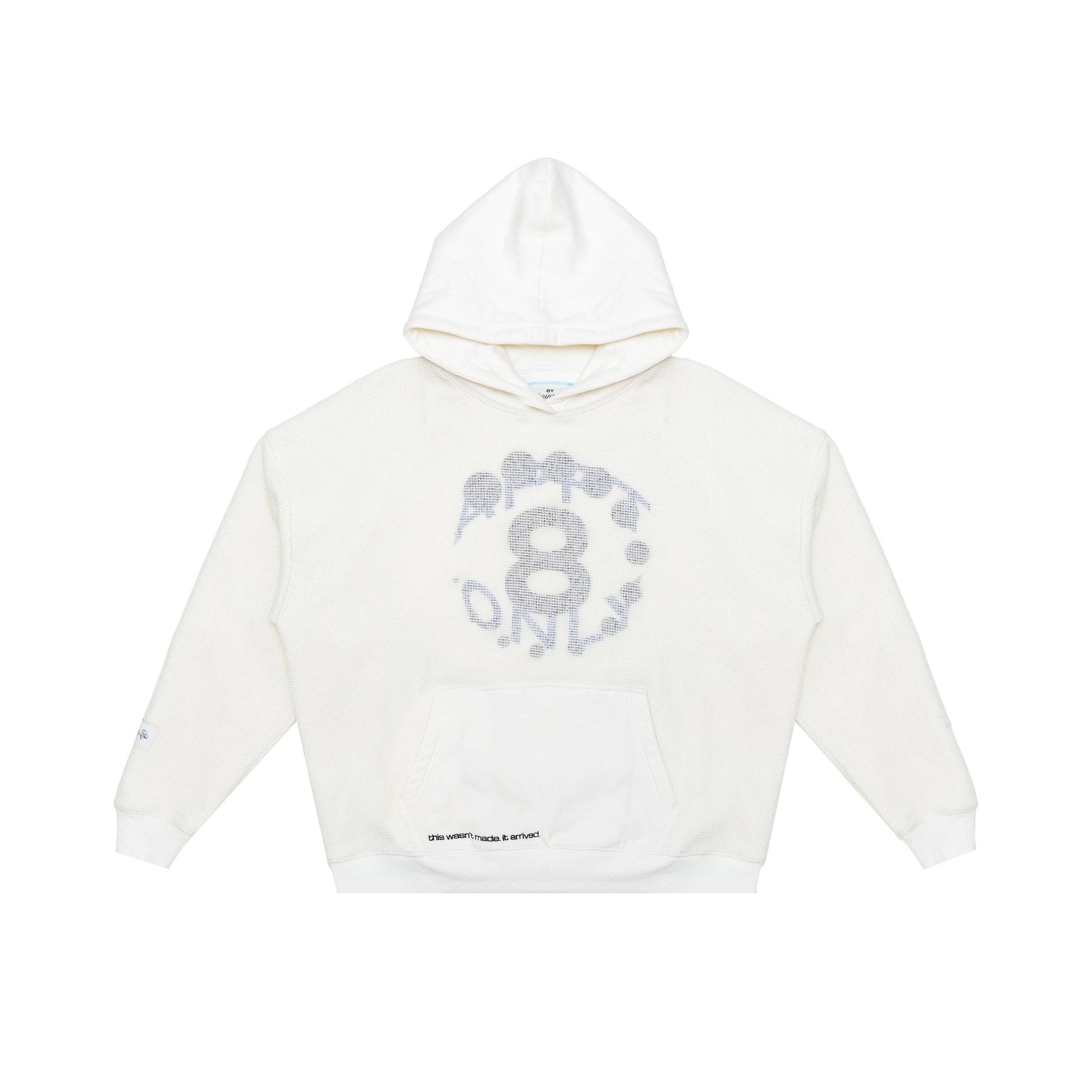 "The" hoodie. Constructed from soft-hand cotton fleece, overlaid with a sheer knit layer that subtly reveals the tonal graphic beneath. This wasn’t made. It arrived.